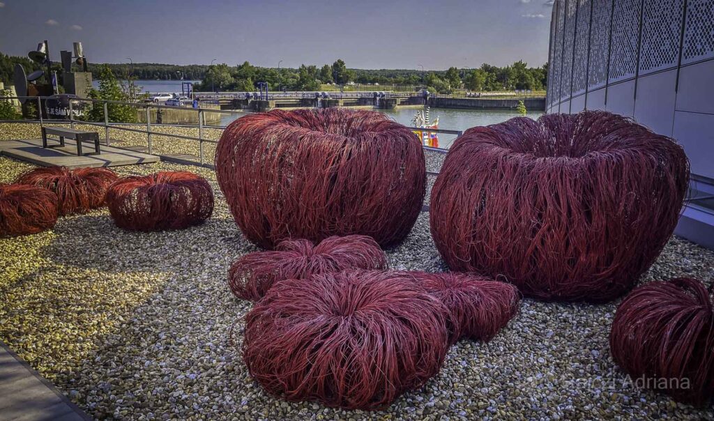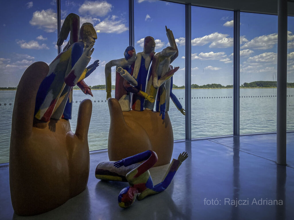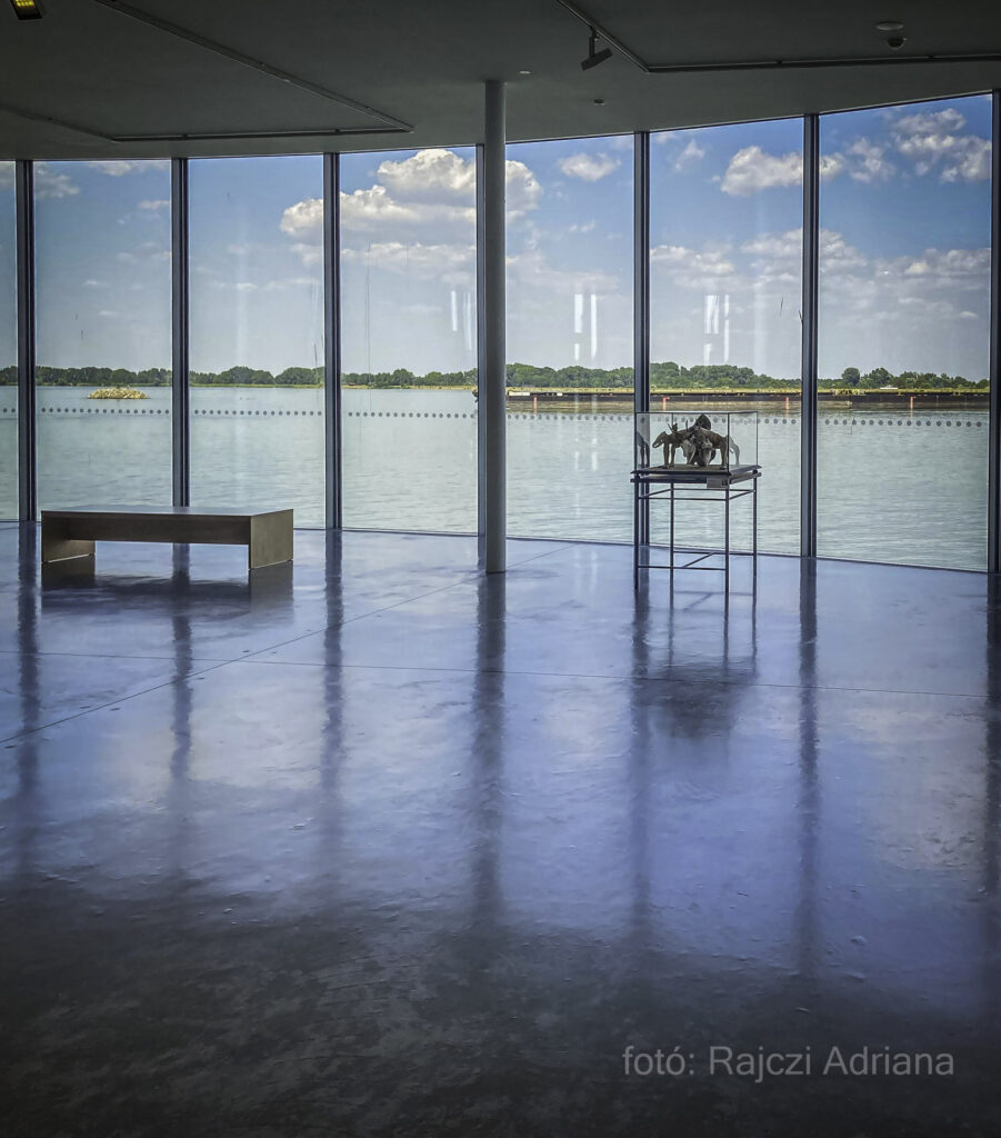 A fantasztikus beltéri kilátáshoz a víztározóra két oldalról keretet adnak a kortárs művészek alkotásai, egyedivé varázsolva a nézőpontot.
